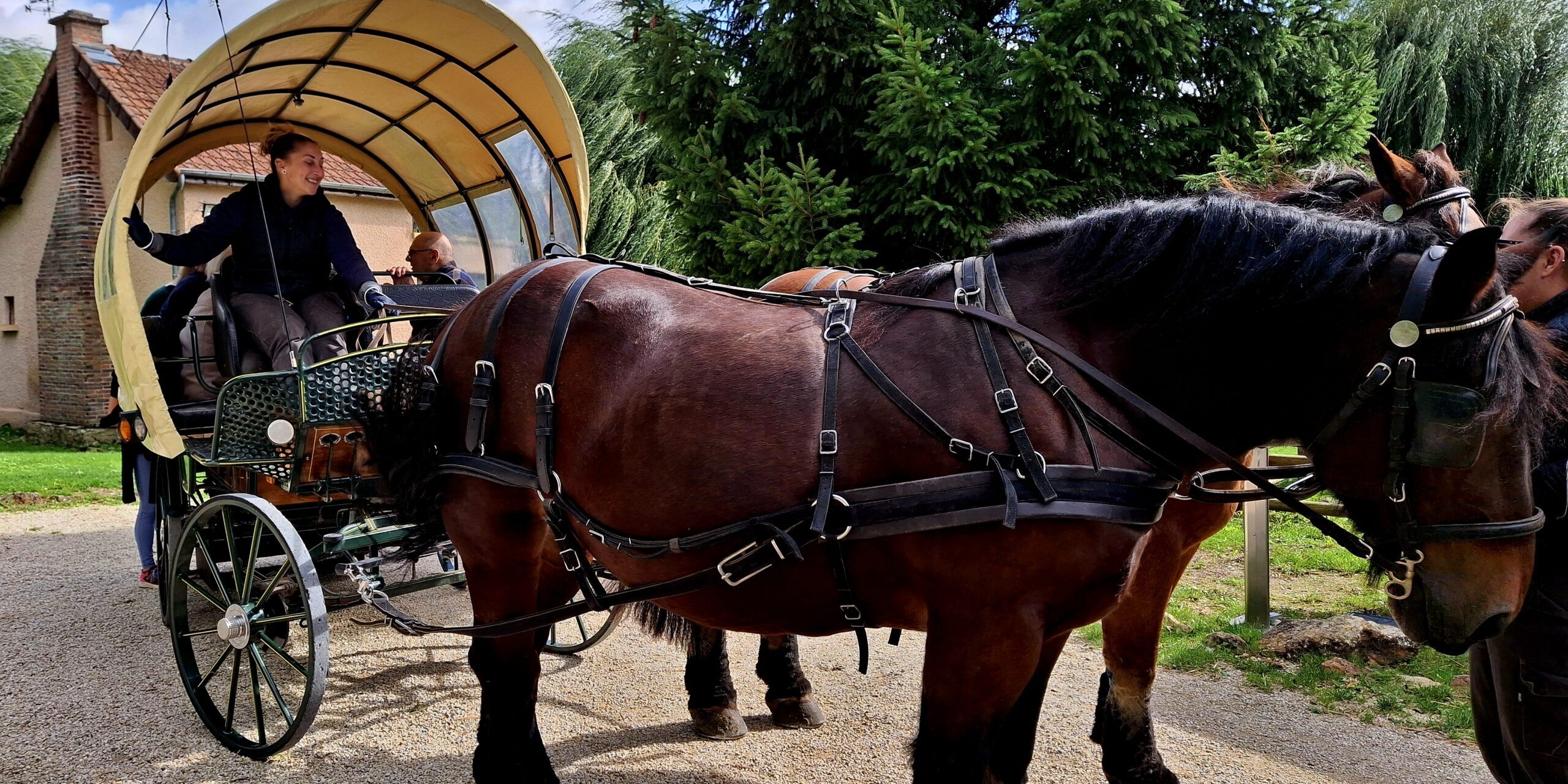 Juil302025Actualités Dans le cadre du projet "nos compagnons de marche", 5 résidents se sont rendus à la ferme pédagogique de la Béchère à Romilly sur Seine. Au programme: nourrissage des animaux et tour de calèche!